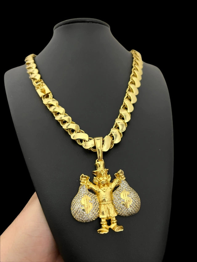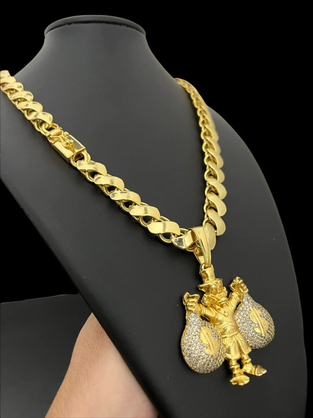 Cordão Friso S 13mm + Pingente - Banhado a Ouro 18K